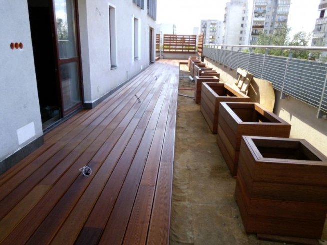 Deski, które przywozimy na inwestycję do naszych Klientów, mają odpowiednie parametry wilgotności. Zawsze sprawdzamy jakość drewna przed dostawą. Jeśli taras znajduje się w miejscu łatwo dostępnym, w mieszkaniu na porterze, lub w domu jednorodzinnym, to materiał rozładowujemy ręcznie, odpowiednio go zabezpieczając i układając tak, aby deski nie były narażone na odkształcenia. Jeśli natomiast taras przewidziany jest w miejscach mało dostępnych to do rozładunku takich jak: dachy lub balkony na wyższych piętrach, wtedy używamy dźwigu. Specjalistycznym dźwigiem jesteśmy w stanie dostarczyć deski tarasowe, na dachy i balkony paro piętrowych budynków. Całość prac wykonujemy z największym bezpieczeństwem i zgodnie z wymogami klientów.